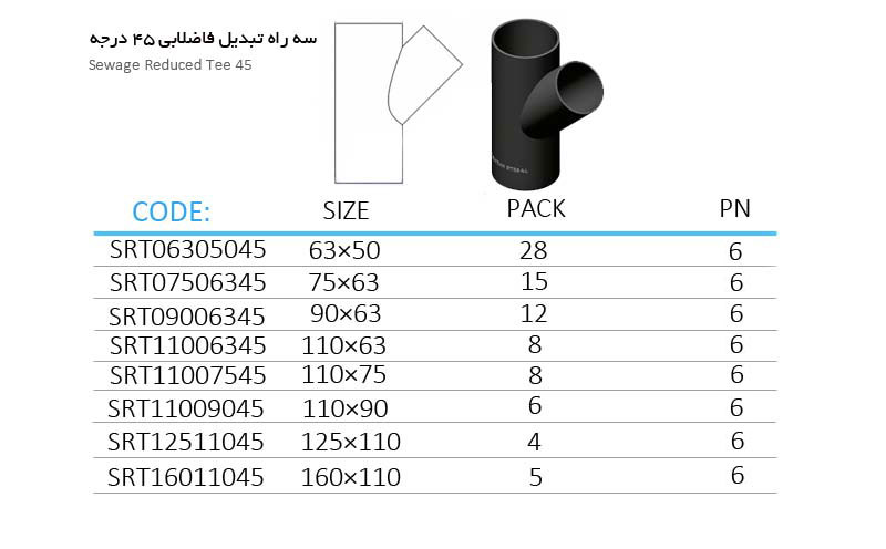 سه راه تبدیل جوشی فاضلابی 45 درجه